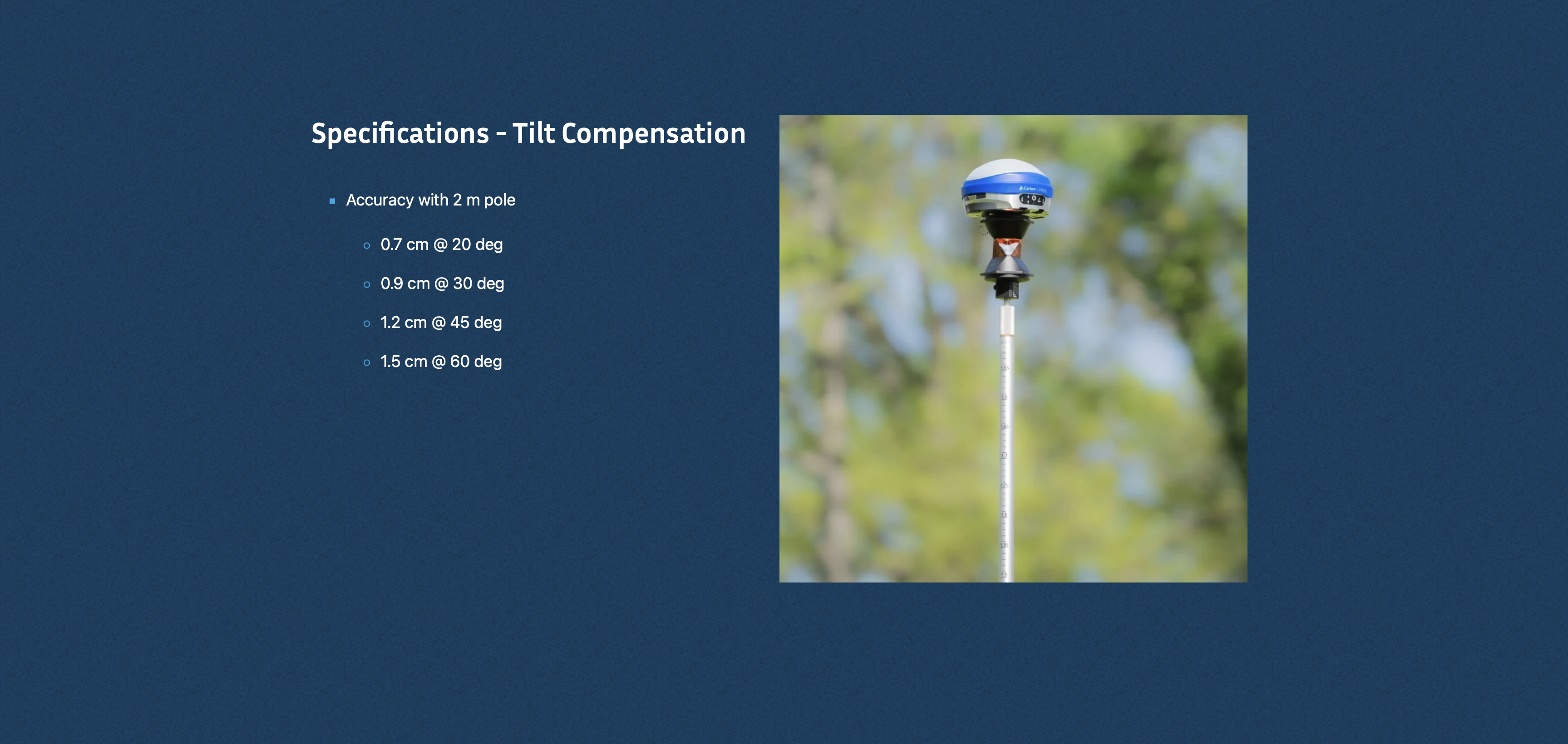 - Tilt Compensation: Industry-leading, calibration-free tilt compensation delivers impressive precision even when surveying at up to 60° of inclination